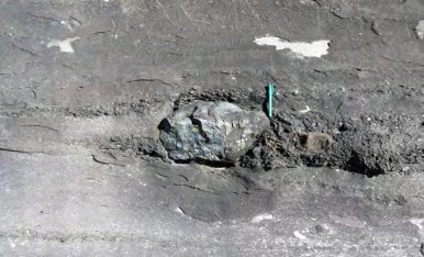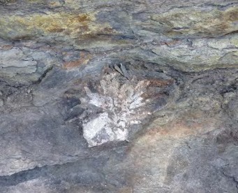 In addition to scattered dropstones, the Wandrawandian Siltstone preserves a variety of fossils that have been described as a cold-water fauna. These include crinoids (sea lilies), bryozoans, brachiopods, and molluscs; as well trace fossils of tracks and feeding trails left behind by creatures that lived on the seafloor and in the sediment some 270 million years ago. Another indication that the ice was not too far away is the occurrence of glendonites – pseudomorphs after ikaite, mineral carbonate crystals that grew within cold (<7°C) soft mud of the seabed (Thomas et al, 2007).