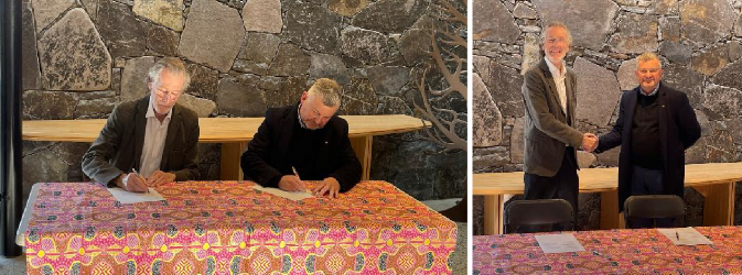 Brad Pillans (left) and Scott Saddler (right) before and after the signing of the agreement to relocate the NRG to the National Arboretum Canberra. Images courtesy M. Cooper.