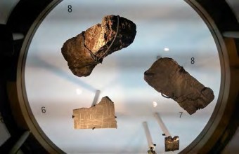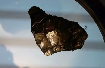 The adjacent poster explains: This rock sample comes from the Nuvvuagittuq volcanic and sedimentary formation on the eastern shore of Hudson Bay in Quebec. It is one of the oldest geological formations ever discovered. This fragment of Earth’s crust is estimated to be at least 3 billion 700 million years old.