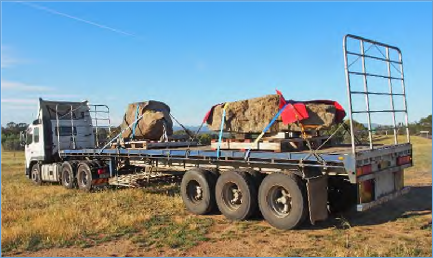 After funds were raised to cover the costs of the long haul from Hobart to the ACT, the rocks were placed on a truck and moved to the NRG’s rock storage site in Canberra.